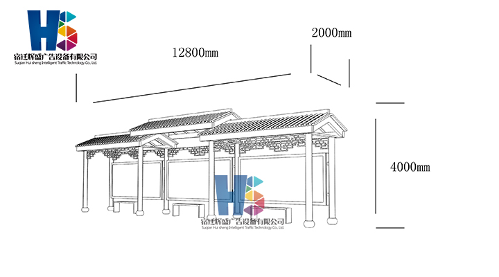 產(chǎn)品外觀(guān) / PRODUCT DETAILS 產(chǎn)品信息 / PRODUCT INFO 【產(chǎn)品名稱(chēng)】:新款候車(chē)亭HS14 【產(chǎn)品系列】:新款候車(chē)亭 【產(chǎn)品型號(hào)】:HS14 【產(chǎn)品規(guī)格】:長(zhǎng)12800mm 寬2000mm 高4000mm 【產(chǎn)品材質(zhì)】:熱鍍鋅鋼板 【使用年限】:10-15年 【詳情致電】:181-5189-0417、157-5170-8886 備注:產(chǎn)品可根據(jù)用戶(hù)需求選用材質(zhì)、顏色及配件,個(gè)性化定制。 1、表面采用靜電噴塑(氟碳烤漆/搪瓷處理) 2、頂棚采用100*100*1.5mm、100*150*2mm鍍鋅管,3mm鍍鋅板激光切割件、1.5mm鍍鋅板焊接骨架,鋪1mm鍍鋅板(10mm陽(yáng)光板) 3、立柱采用150*150*3mm鍍鋅管 4、箱體采用1.5mm鍍鋅板折彎焊接成型,門(mén)框采用全玻鋁合金型材,視窗采用6mm鋼化玻璃 5、照明電器采用LED燈粒 產(chǎn)品尺寸 / PRODUCT SIZE 關(guān)于輝盛 / 為社會(huì)分擔(dān)責(zé)任,為客戶(hù)創(chuàng)造價(jià)值 宿遷輝盛廣告設(shè)備有限公司是一家集設(shè)計(jì)、研發(fā)、生產(chǎn)為一體的城市公共設(shè)施生產(chǎn)型企業(yè)。主要產(chǎn)品有:候車(chē)公交亭、公交站臺(tái)、閱報(bào)欄、路名牌、垃圾箱、燈箱等市政設(shè)施系列產(chǎn)品和工程配套設(shè)施系列產(chǎn)品,現(xiàn)有高級(jí)技師30多人,高級(jí)職稱(chēng)設(shè)計(jì)人員10人,是一家具有自主開(kāi)發(fā)和設(shè)計(jì)能力的以公交亭、智能公交為主導(dǎo)的綜合性城市公共設(shè)施制造企業(yè)。為了進(jìn)一步改善生產(chǎn)工藝,提高產(chǎn)品質(zhì)量,公司引進(jìn)了先進(jìn)生產(chǎn)設(shè)備,包括立臥式加工中心,工業(yè)涂裝流水線(xiàn),CNC車(chē)床,線(xiàn)切割機(jī),大型數(shù)控板機(jī),數(shù)控折邊機(jī),數(shù)控沖孔機(jī)床,大型折彎?rùn)C(jī)等。公司還專(zhuān)門(mén)成立了產(chǎn)品研發(fā)部門(mén),現(xiàn)每年自主開(kāi)發(fā)或應(yīng)客戶(hù)要求設(shè)計(jì)推出多款新產(chǎn)品。 榮譽(yù)資質(zhì) / ENTERPRISE HONOR